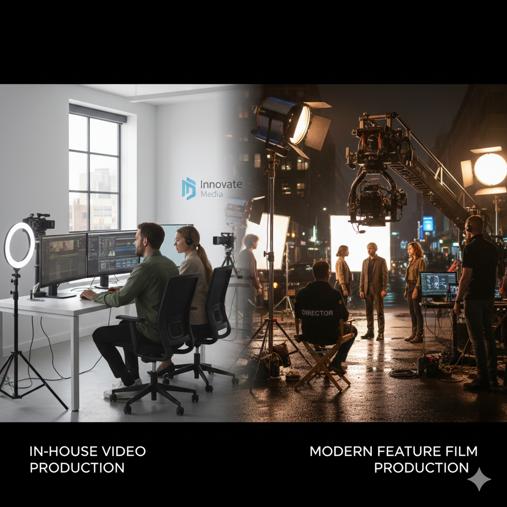 Dieser Gedanke ist verführerisch. Er verspricht Unabhängigkeit, Geschwindigkeit und scheinbare Kostenkontrolle. Und tatsächlich sehen wir immer mehr Unternehmen, die sich kleine Inhouse-Studios bauen. Als Regisseur und Stratege, der seit 15 Jahren im Geschäft ist, sage ich Ihnen ganz ehrlich: Das ist nicht per se falsch.