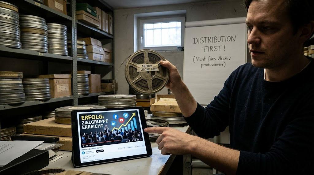 Die Enttäuschung ist groß. "Video funktioniert für uns nicht", heißt es dann. Doch das Problem war nicht das Video. Das Problem war, dass 90% der Energie in die Herstellung geflossen sind und 0% in die Verbreitung. Ein Video ohne Distributionsplan ist kein Marketing-Asset. Es ist teurer Datenmüll auf einem Server.