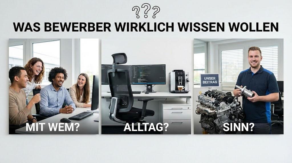 Diese Antworten sind Gold wert. Wenn eine Mitarbeiterin sagt: "Klar ist es stressig vor der Deadline, aber wenn wir es dann geschafft haben, bestellen wir Sushi für alle und feiern", dann ist das glaubwürdig. Das ist Kultur. Das ist echtes Storytelling.